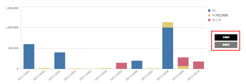 - チャートを内部に保つ・・・ONにするとコンテンツがLayoutContainerのオブジェクトサイズ内の設定になります。OFFにすると、コンテンツがはみ出て設定されます。(表示が隠れる)