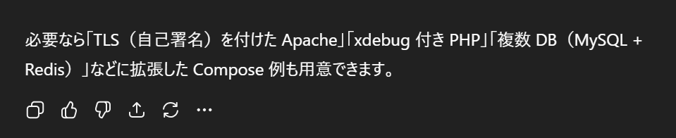 下記の画像はApacheサーバとmysqlサーバのdocker compose例を聞いた時の提案です。